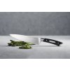 Široká těžká čepel kuchařského nože usnadňuje práci s náročnými úkoly při sekání, krájení na kostky i na plátky.