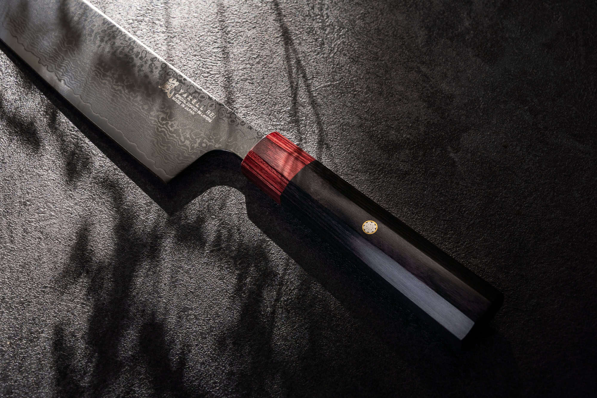 Srdce nože tvoří jádro z VG10 „super oceli“, obklopené 34 vrstvami damaškové oceli z každé strany – celkem tedy 69 vrstev.Výroba damaškové spočívá ve spojení tvrdé vysoko uhlíkaté oceli a houževnaté nízkouhlíkaté, které se opakovaně překládají. Po finálním opískování se na čepeli odhalí unikátní damaškový vzor, díky kterému je každý kus originál – žádné dva nože nejsou stejné.